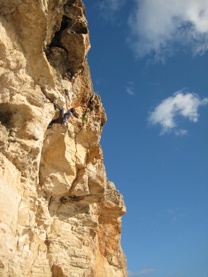 Desplome con buen agarre. Paso a la mitad, quizá 6b+/6c.